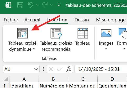 • Allez dans l'onglet "Insertion" et cliquez sur "Tableau croisé dynamique".