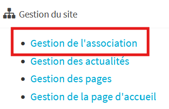 Selon votre rôle, vous pouvez retrouver ces options dans la partie Gestion de l’association.