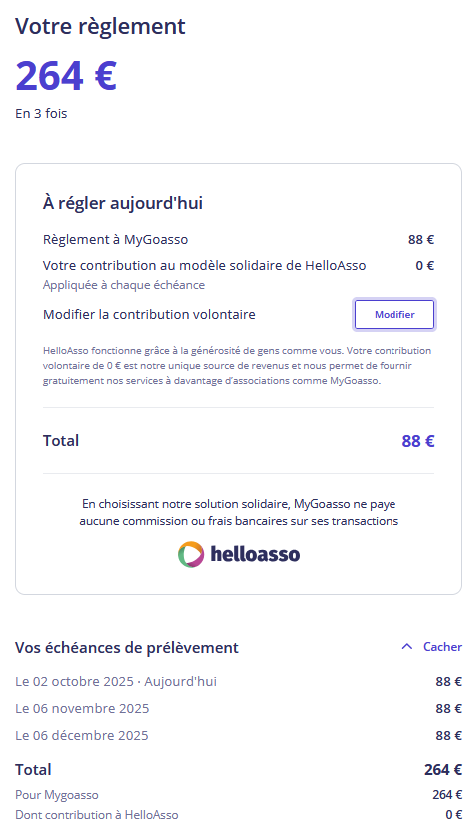 Note nous sur l'image ci dessous nous avons modifié la contribution HelloAsso à 0€