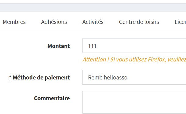 Sur le compte GoAsso du bénéficiaire, vous devez ensuite enregistrer un paiement avec la méthode « Remb HelloAsso » pour le montant remboursé.