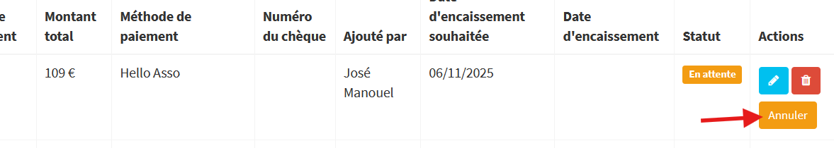 S'il s'agit d'un paiement échelonné, marquez les paiements en attente comme "annulé" en cliquant sur le bouton "Annuler" et il ne comptera plus dans le solde de la famille.