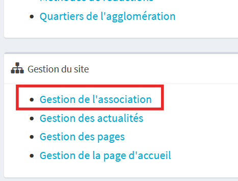 Pour accéder à cette option il faut avoir le rôle de Responsable et aller dans le menu des paramètres puis dans la gestion de l'association.